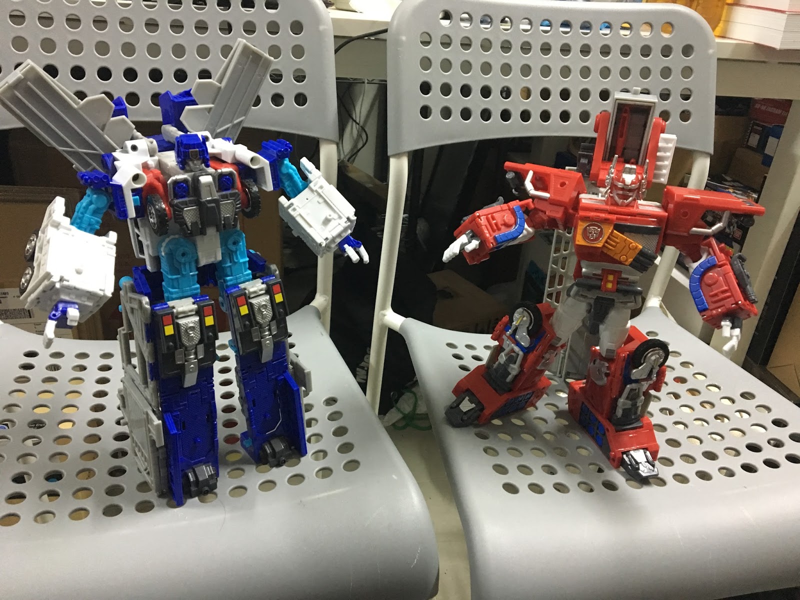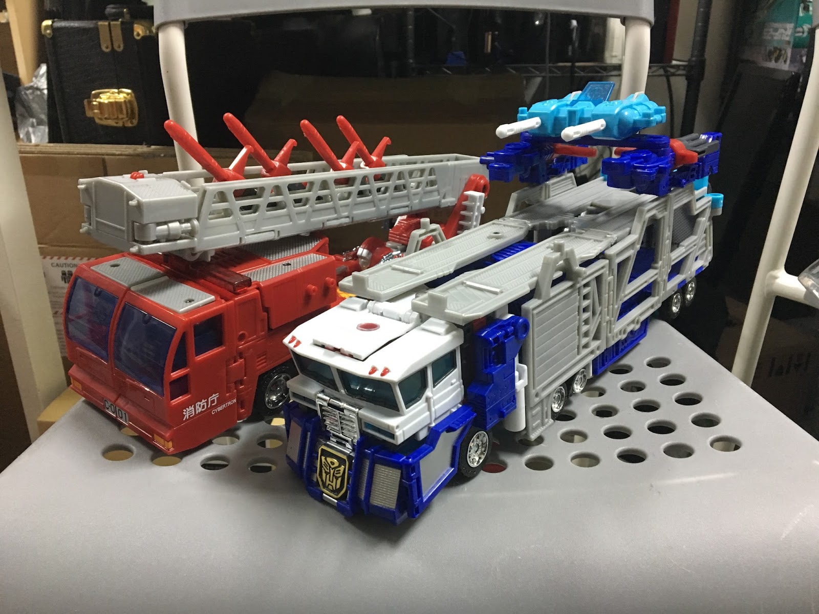一打開盒就是已是人形的Fire Convoy 跟God Magnus
